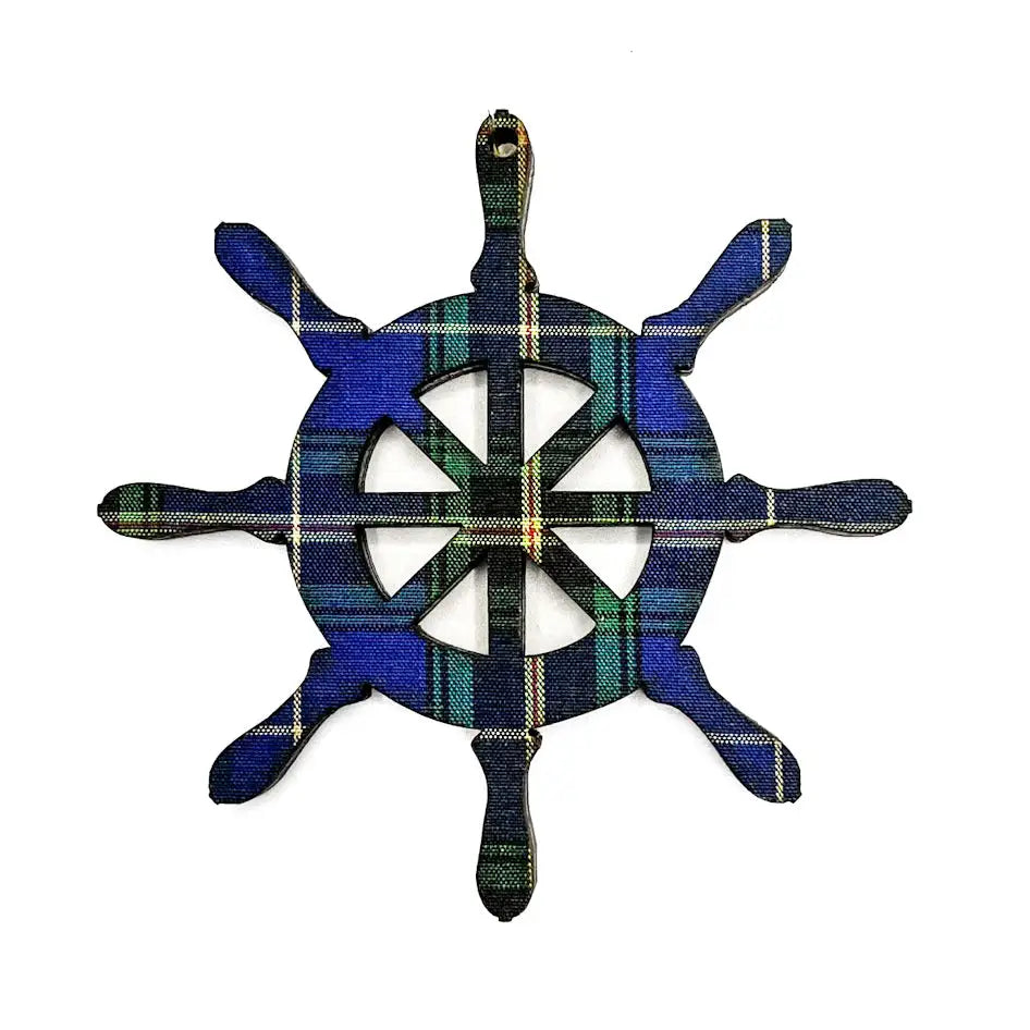 Ship's Wheel ornament made with Nova Scotia tartan fabric.