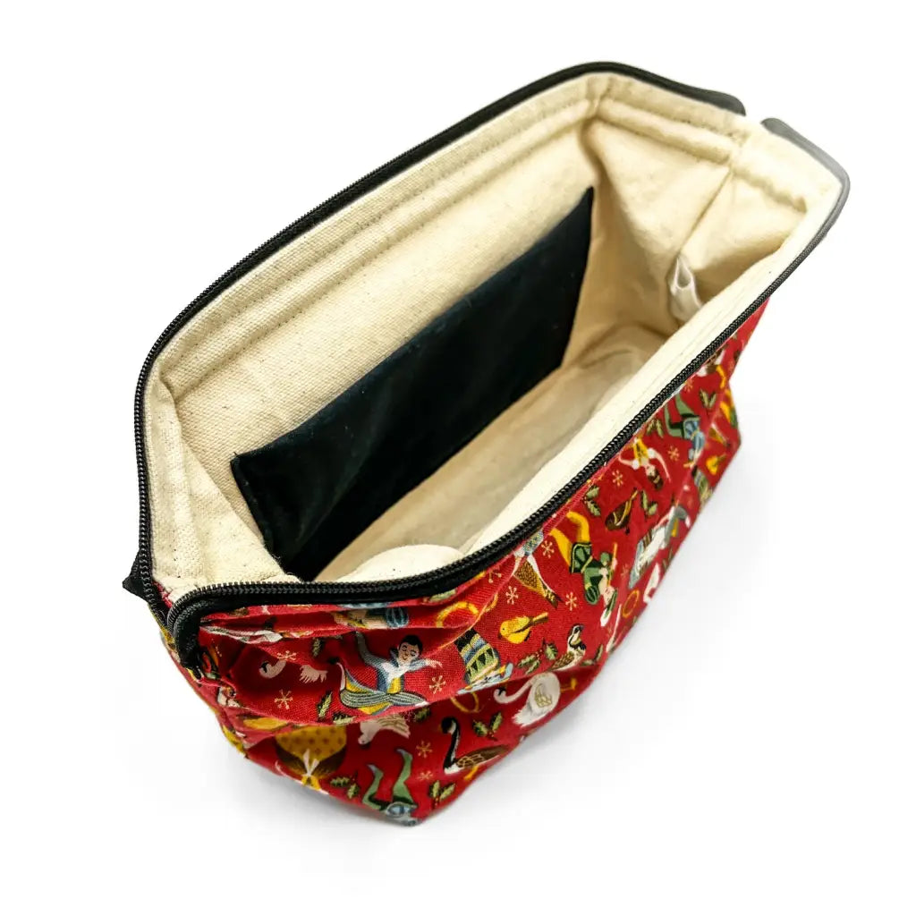 Handy retreat bag for travel or crafting. Opening stays open with a wire form.