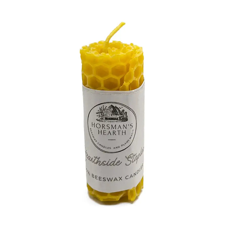 This hand-poured, pillar-shaped candle is made using pure beeswax from Nova Scotia and 100% cotton wicks.