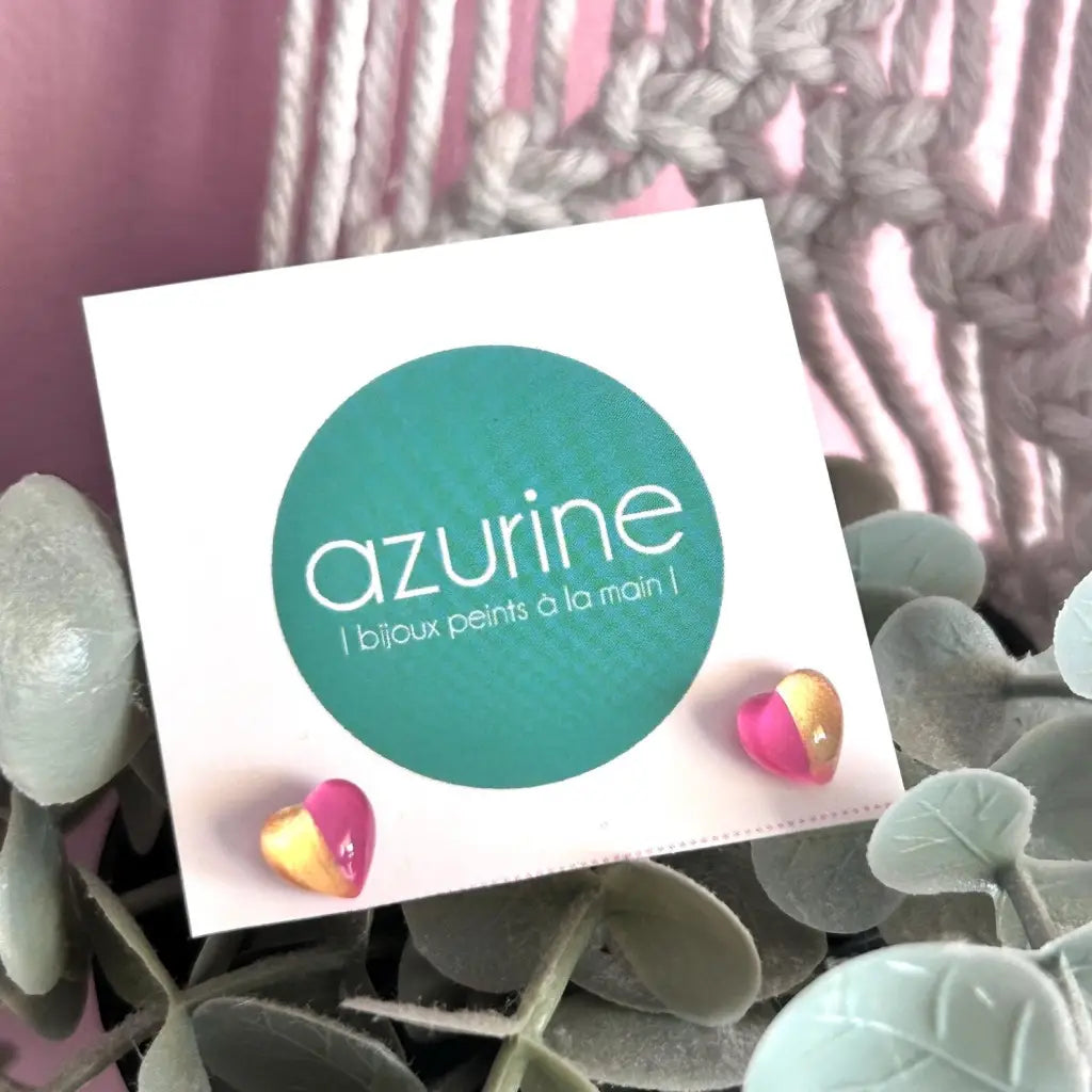 Gold & Pink Tiny Heart Handpainted Glass Stud Earrings