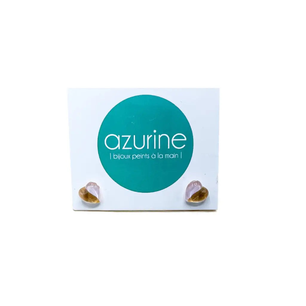 Gold & Light Pink Tiny Heart Handpainted Glass Stud Earrings