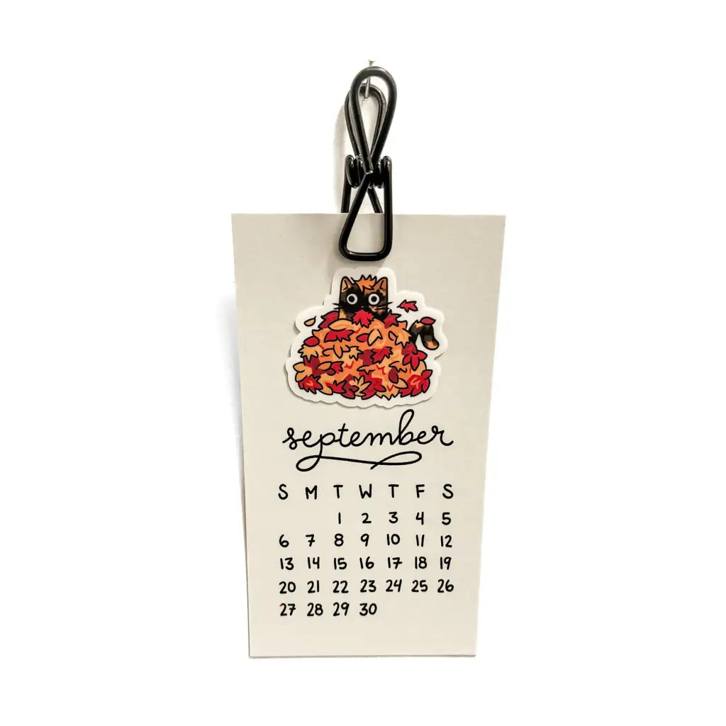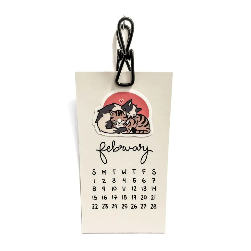 A year in cats, what could be better? This mini desk or wall calendar comes with 12 removable vinyl stickers, one for each month. Behind each sticker lies a secret surprise kitty!