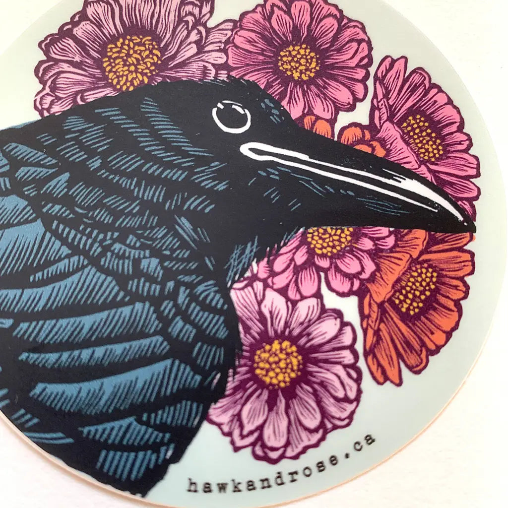 Raven & Flowers Sticker
