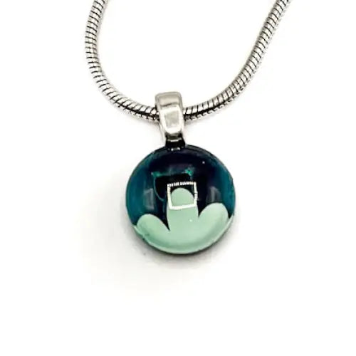 Round Mint Petals on Teal Handpainted Glass Pendant