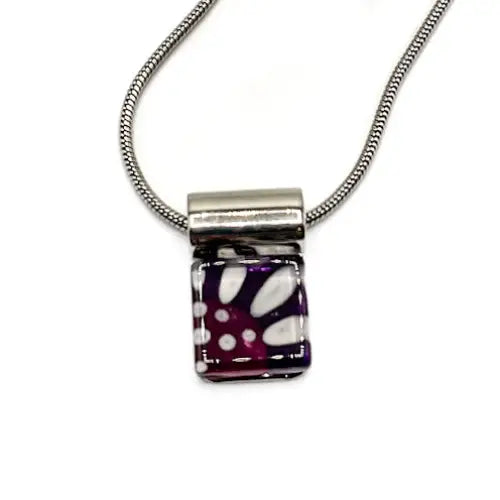 Small Square Plum Center Daisy Handpainted Glass Pendant