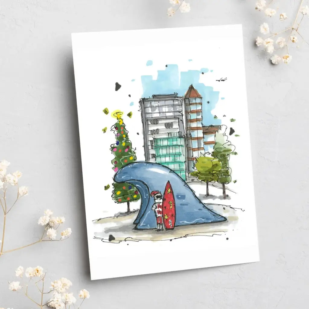 Santa Surfing the Wave Card