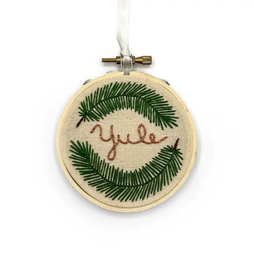 Katiebette embroidery is based in Halifax, Nova Scotia. All pieces are freehand embroidered without patterns creating small unique differences in each ornament.