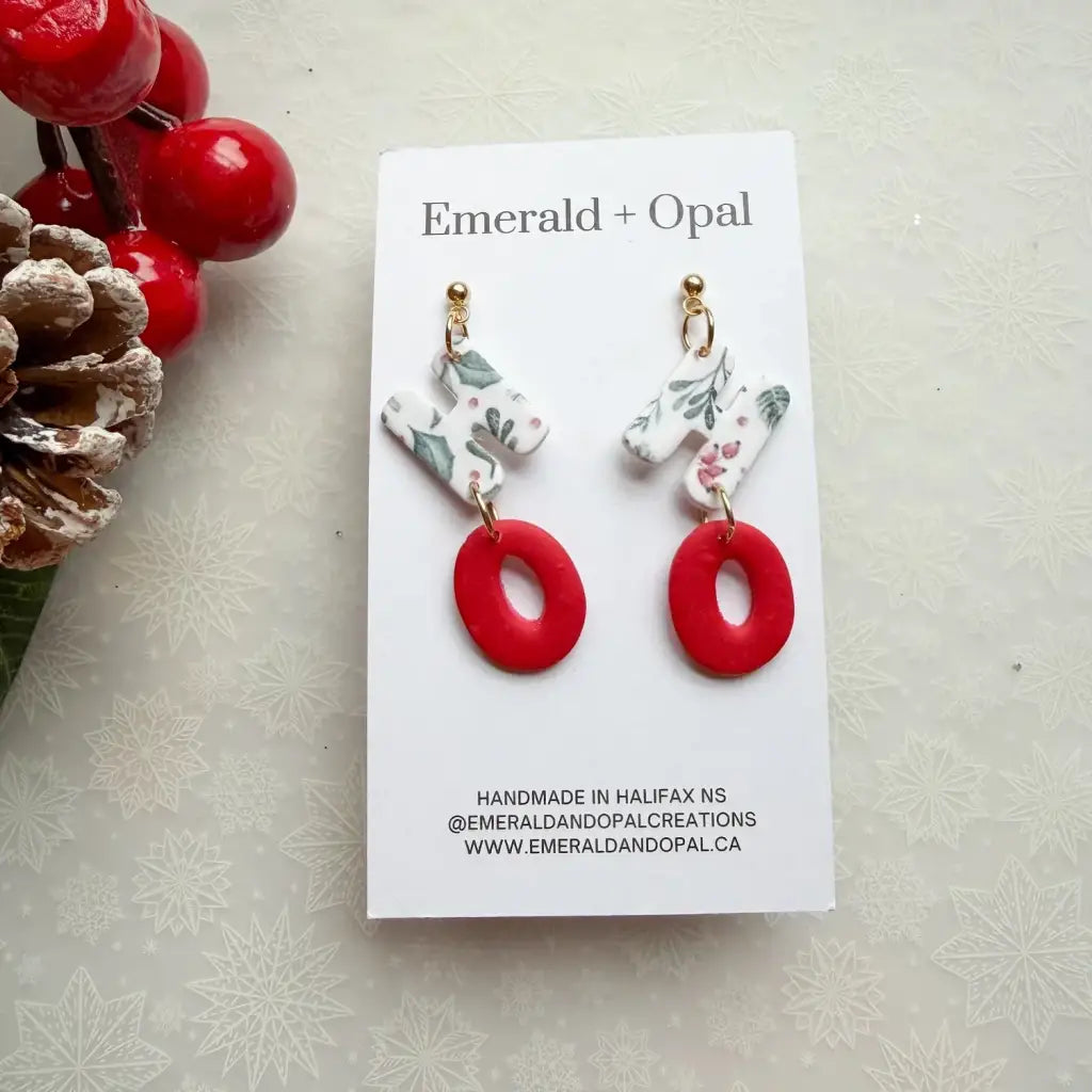 Ho Ho Foliage & Red Dangle Earrings