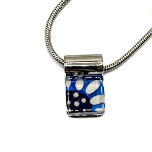 Small Square Blue & White Daisy on Blue Handpainted Glass Pendant