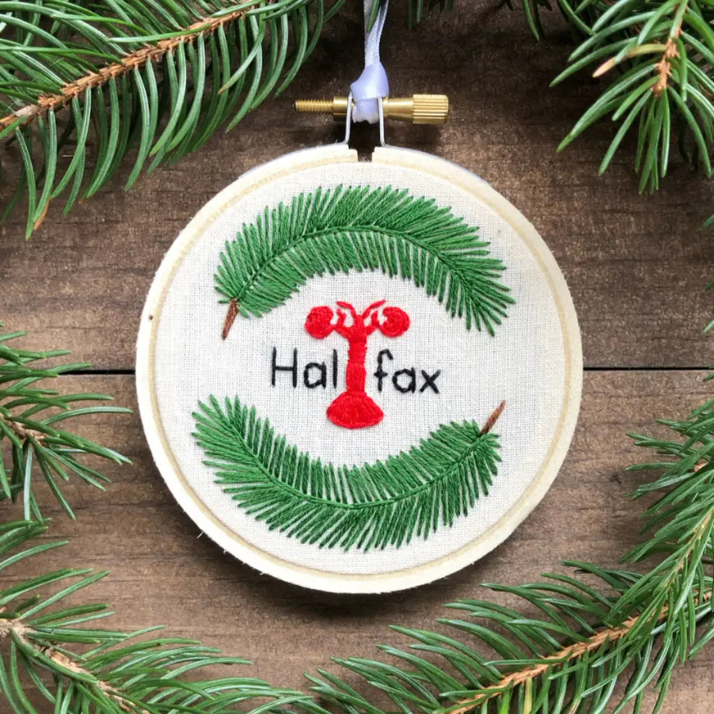 Katiebette embroidery is based in Halifax, Nova Scotia. All pieces are freehand embroidered without patterns creating small unique differences in each ornament.