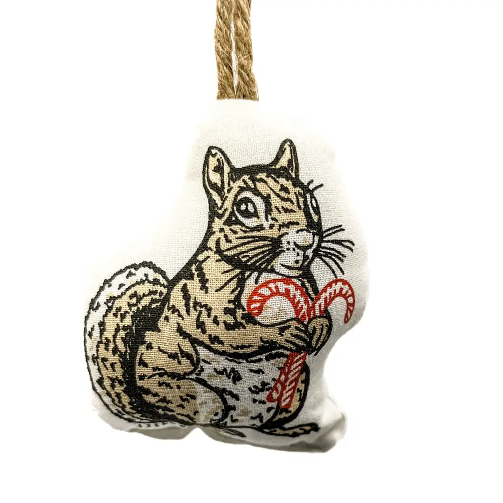 This foraging squirrel has found some candy canes and he just might be willing to share. This stuffed squirrel ornament will surely add some sweet woodland vibes to your holiday decor.