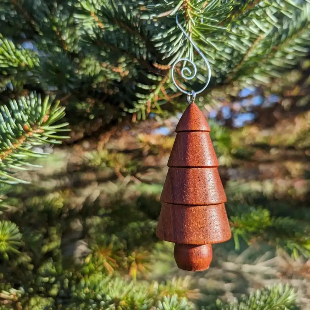 Dress up your tree or give the gift of unique artistry this season! Made out of African Mahogany, these adorable wooden evergreen tree ornaments are sure to make a statement on your tree!