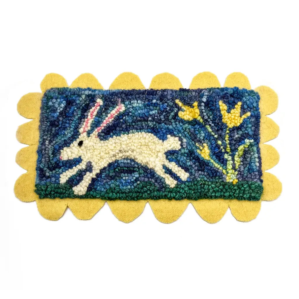 Leaping Rabbit Rug Hooked Mat