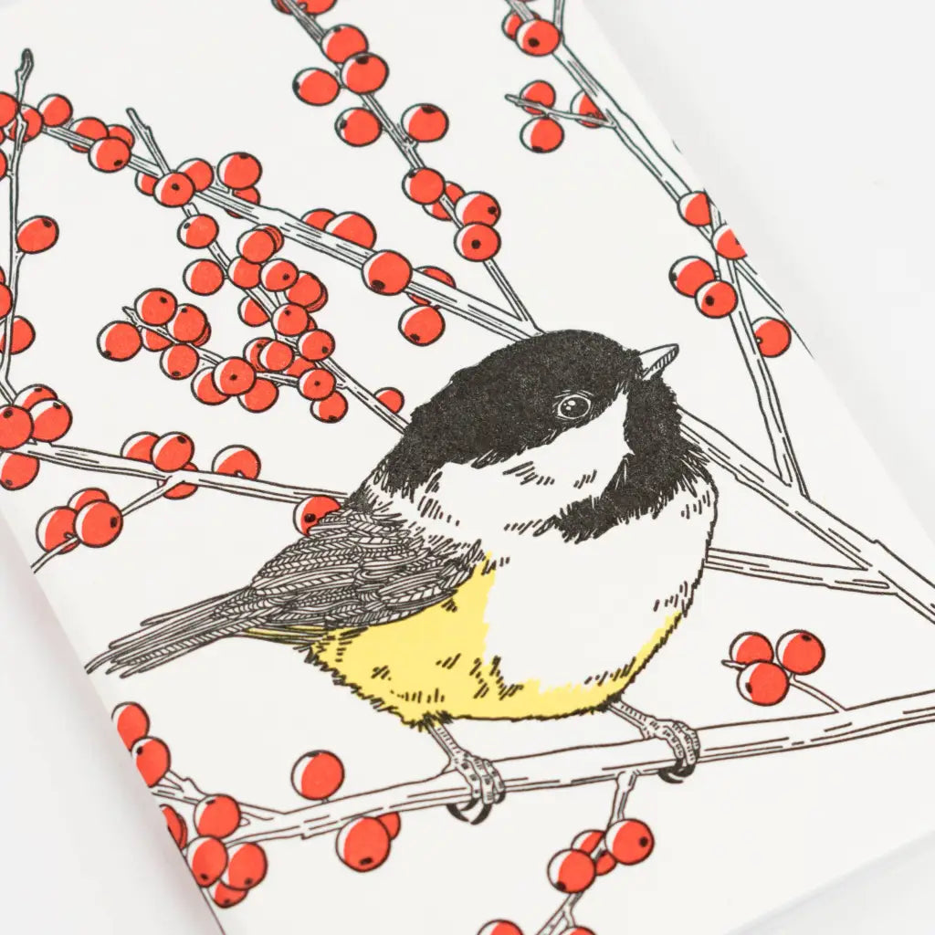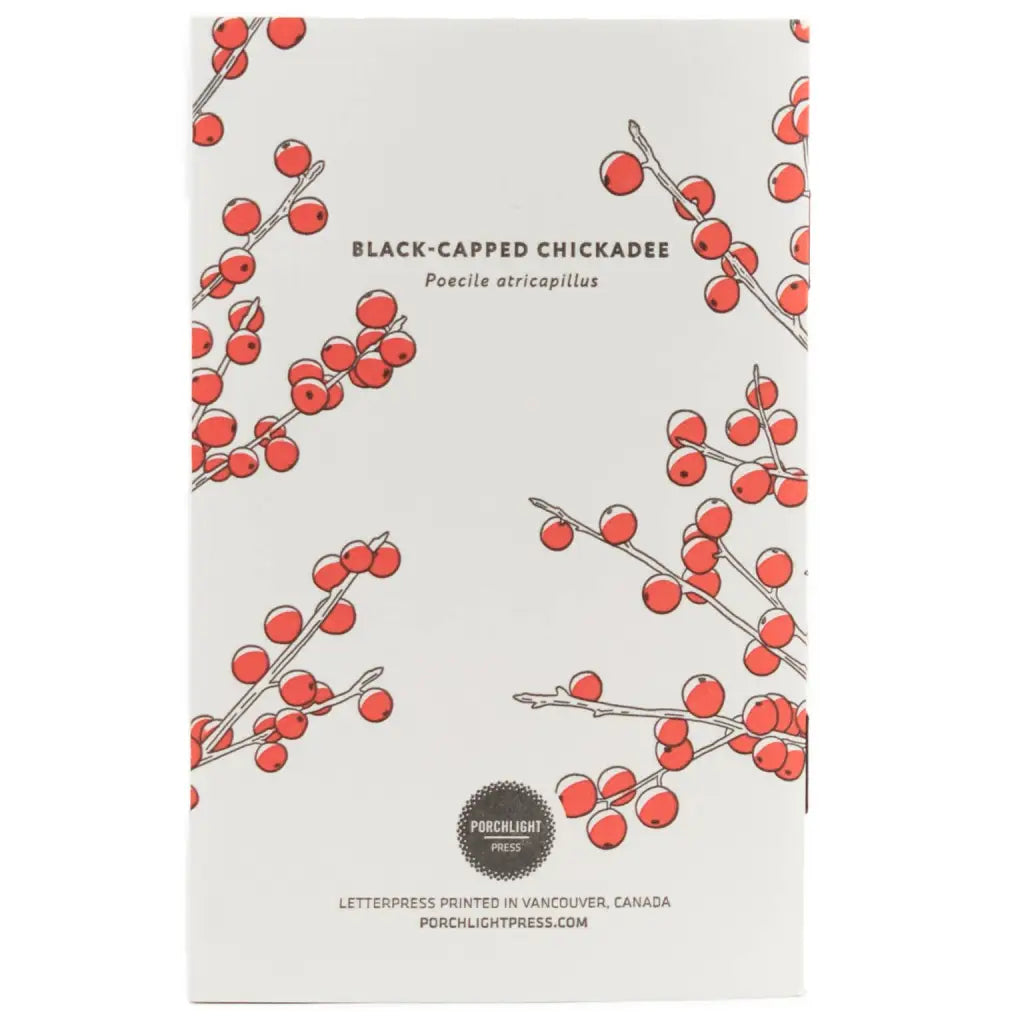 This pocket-sized chickadee notebook captures the birds sweetness and beauty through letterpress printed intricate details on a high quality light cream stock.