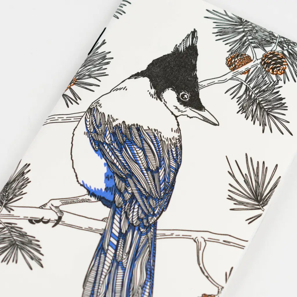 This pocket-sized Steller's Jay notebook captures the birds beauty and feather patterns through letterpress printed intricate details on a high quality light cream stock.