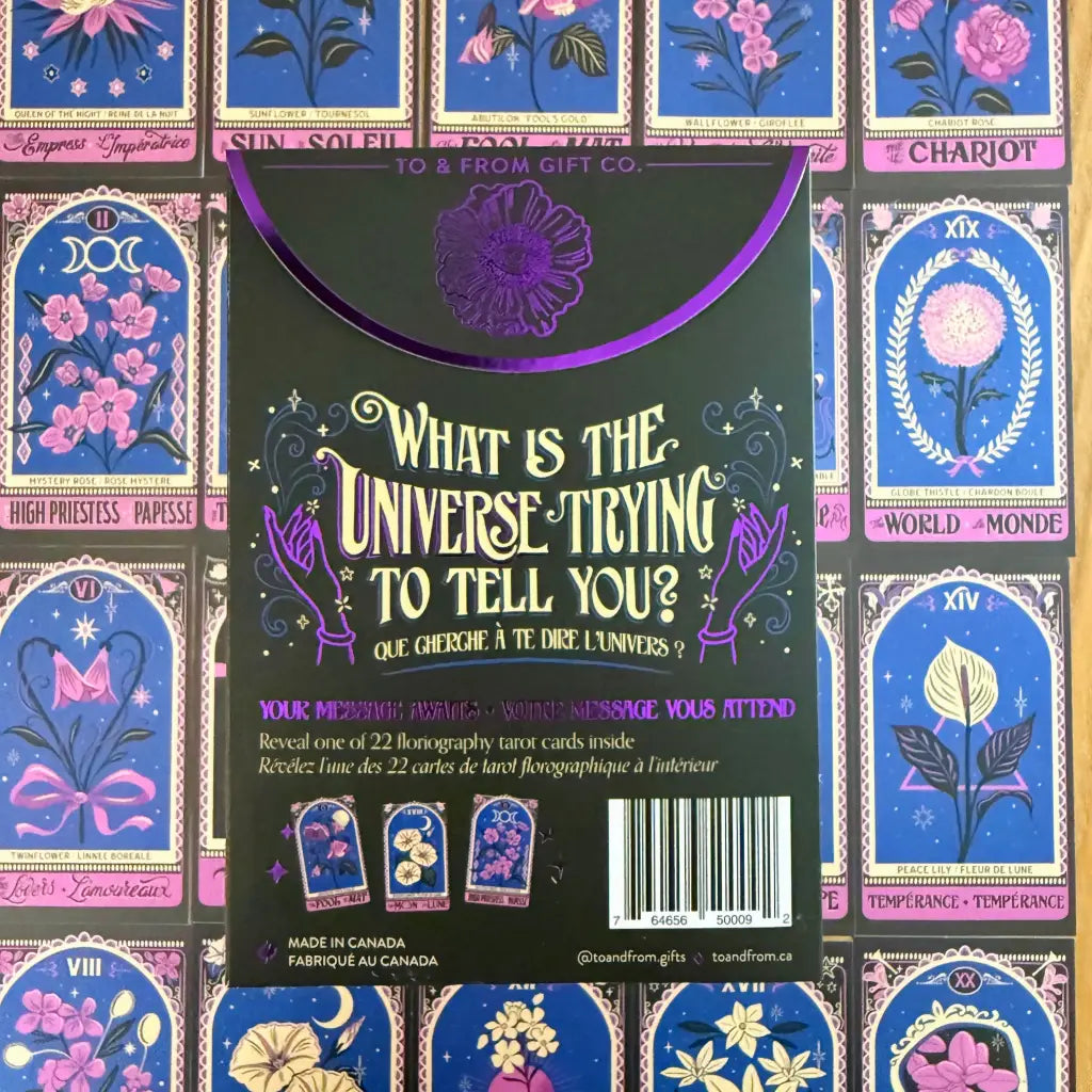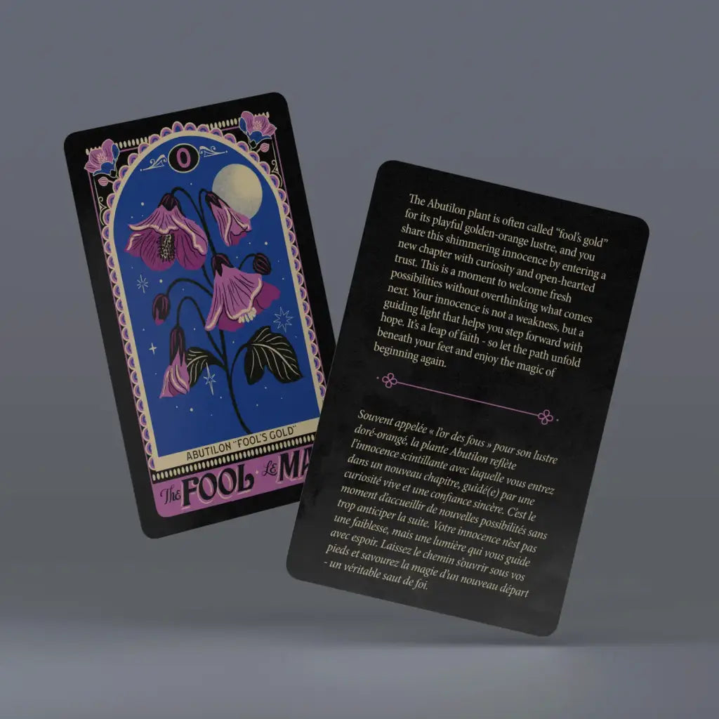 Discover one of 22 Major Arcana tarot cards inside each pack, beautifully illustrated in vibrant colour and printed on shimmery, pearlescent stock. The back of each tarot card found inside contains an explanation of the chosen card’s flower and meaning.