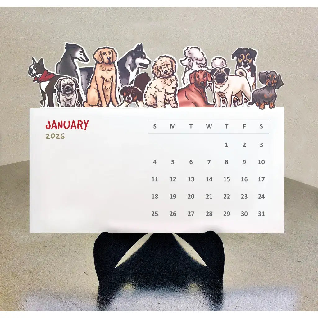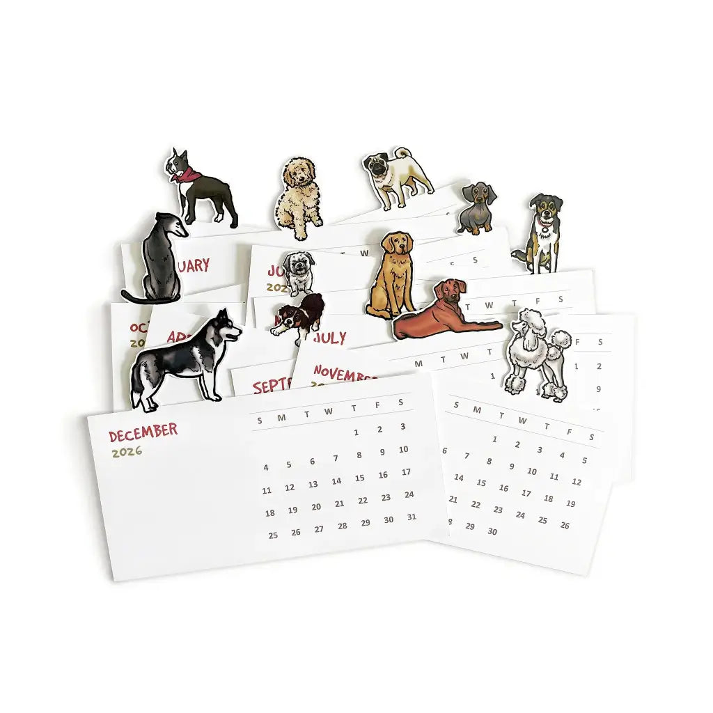This illustrated calendar features a cute, illustrated die cut dog on the upper edge. As you switch over your cards to the next month, the scene will shuffle and keep changing. The whimsical style of illustration is perfect for both kids and adults. The crazy dog lover needs to have this!