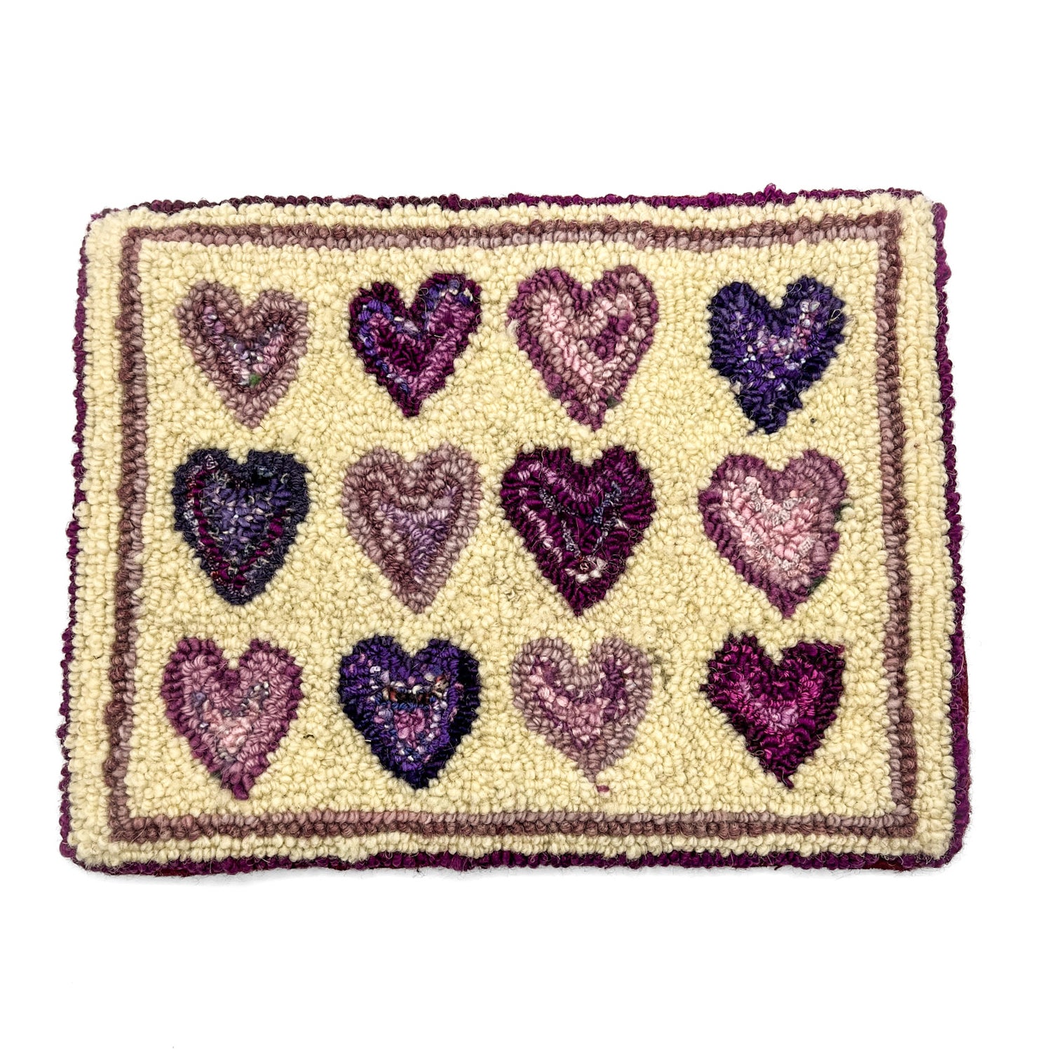 Lavender Hearts Rug Hooked Mat