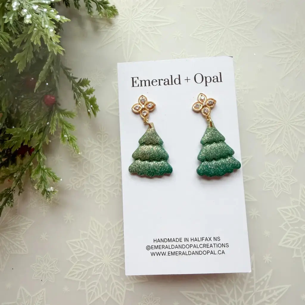 Ombre Shimmer Christmas Tree w/ Crystal Star Dangle Earrings